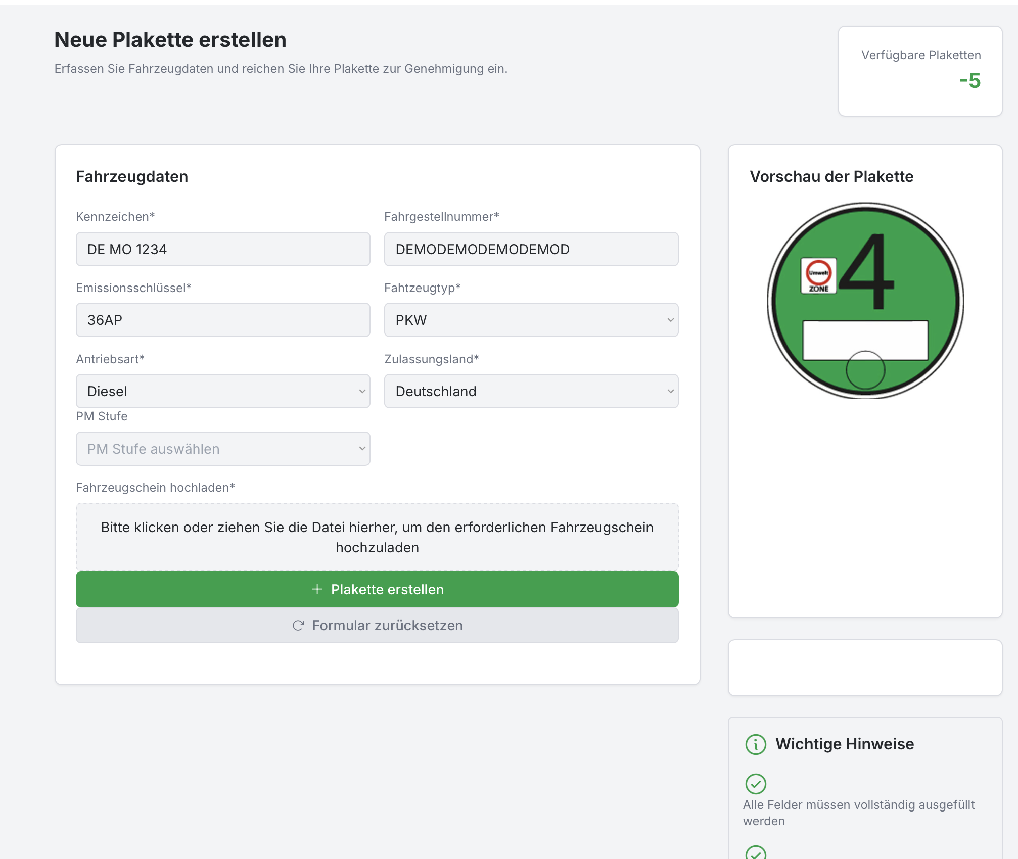 Die Software bietet eine zuverlässige, praxisorientierte Lösung für Unternehmen, die Umweltplaketten effizient und professionell selbst ausstellen möchten.